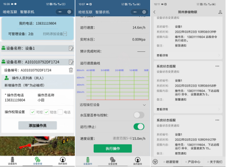 當發生停水、停電、機械故障等情況;發生噴頭車離主機距離小于50米或零距離靠近主機,水壓低于設定值等情況下智控報警系統在15分鐘內向操作人員手機進行三次短信發送和三次撥打電話報警。